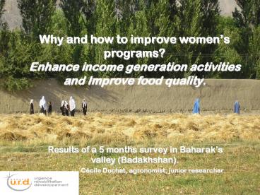 (Badakhshan). - Cécile Duchet, agronomist, junior researcher.