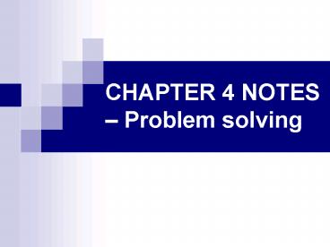 CHAPTER 4 NOTES Problem solving