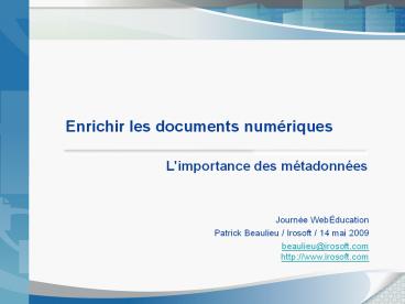 Title: Agir en amont pour pr server nos archives num riques ? Author: Beaulieu, Patrick Last modified by: Patrick Beaulieu Created Date: 4/17/2008 6:21:53 PM – PowerPoint PPT presentation