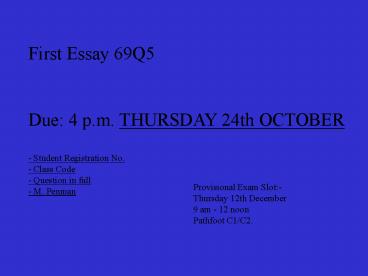 1First Essay 69Q5 Due 4 p.m. THURSDAY 24th