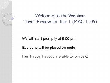 <Notice: Removed> Welcome to the Webinar PowerPoint PPT Presentation