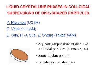 Title: LIQUID-CRYSTALLINE PHASES IN COLLOIDAL SUSPENSIONS OF DISC-SHAPED PARTICLES