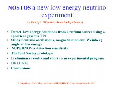 first step to NOSTOS - Conference in Paris 9 10 dec 2004. Interested