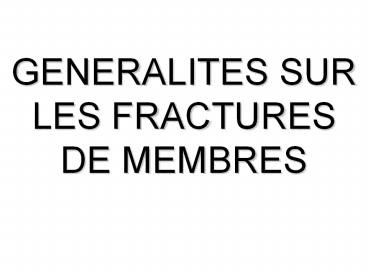 GENERALITES SUR LES FRACTURES DE MEMBRES PowerPoint PPT Presentation