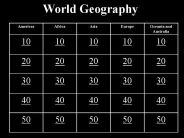 Title: World Geography - PowerPoint Jeopardy