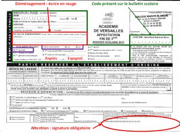 1Code présent sur le bulletin scolaire