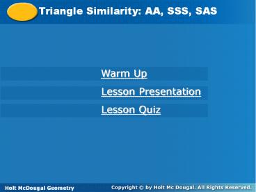 <Notice: Removed> Triangle Similarity: AA, SSS, SAS PowerPoint PPT Presentation