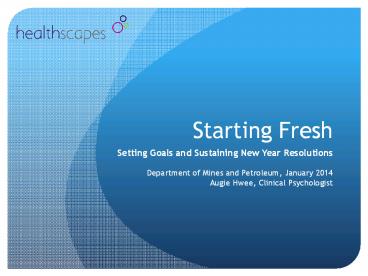 Starting Fresh Setting Goals and Sustaining New Year Resolutions Department of Mines and Petroleum, January 2014 Augie Hwee, Clinical Psychologist – PowerPoint PPT presentation