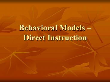 Behavioral Models Direct Instruction