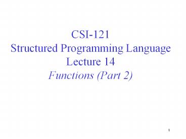<Notice: Removed> CSI-121 Structured Programming Language Lecture 14 Functions (Part 2) PowerPoint PPT Presentation