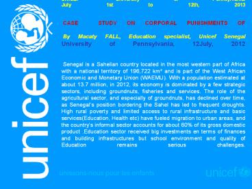 <Notice: Removed> UNICEF - SENEGAL Country Programme 2012 PowerPoint PPT Presentation