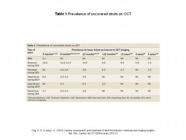 <Notice: Removed> Table 1 Prevalence of uncovered struts on OCT PowerPoint PPT Presentation