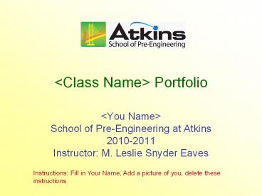 <Notice: Removed> <Class Name> Portfolio PowerPoint PPT Presentation