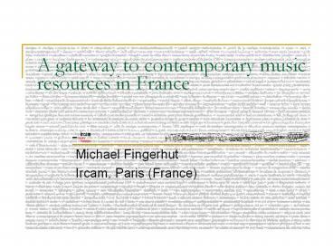 <Notice: Removed> A gateway to contemporary music resources in France PowerPoint PPT Presentation