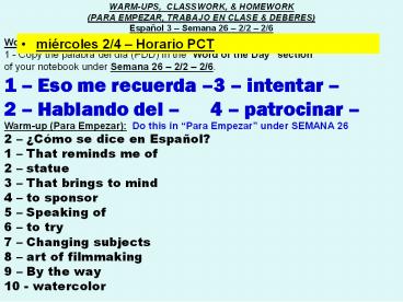 <Notice: Removed> WARM-UPS, CLASSWORK, PowerPoint PPT Presentation