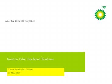 Isolation Valve Installation Readiness PowerPoint PPT Presentation