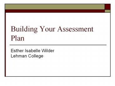 <Notice: Removed> Building Your Assessment Plan PowerPoint PPT Presentation