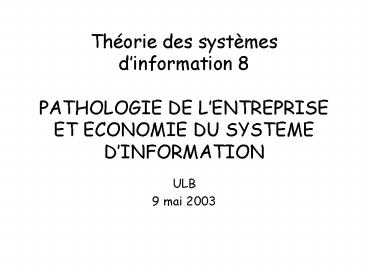 1Théorie des systèmes dinformation 8PATHOLOGIE