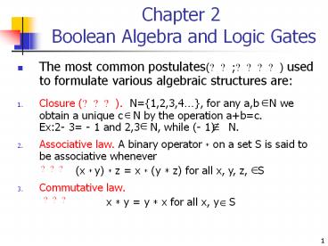<Notice: Removed> Chapter 2 Boolean Algebra and Logic Gates PowerPoint PPT Presentation
