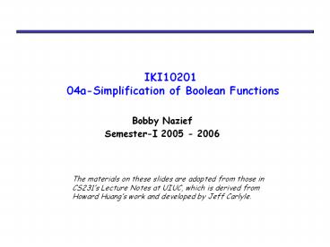 <Notice: Removed> IKI10201 04a-Simplification of Boolean Functions PowerPoint PPT Presentation