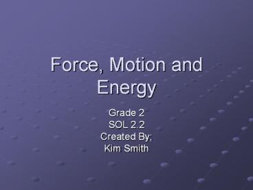 Force, Motion and Energy PowerPoint PPT Presentation