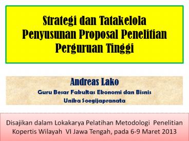 Title: Strategi dan Tatakelola Penyusunan Proposal Penelitian Perguruan Tinggi