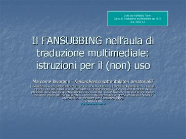 <Notice: Removed> Il FANSUBBING nell PowerPoint PPT Presentation