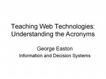 <Notice: Removed> Teaching Web Technologies: Understanding the Acronyms PowerPoint PPT Presentation