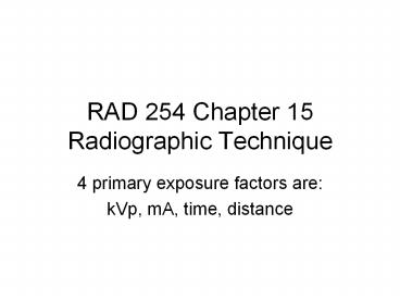 RAD 254 Chapter 15 Radiographic Technique PowerPoint PPT Presentation