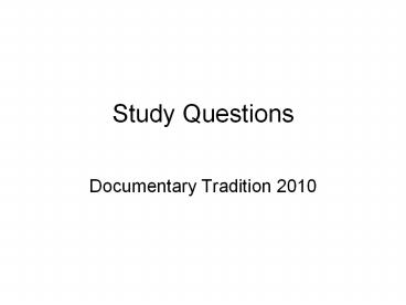 Study Questions Documentary Tradition 2010 Assignment # 1 Due: September 27 in class Define documentary mode: page paragraph -- double-spaced Agree or disagree ... – PowerPoint PPT presentation