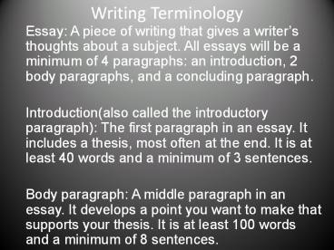 <Notice: Removed> Writing Terminology PowerPoint PPT Presentation