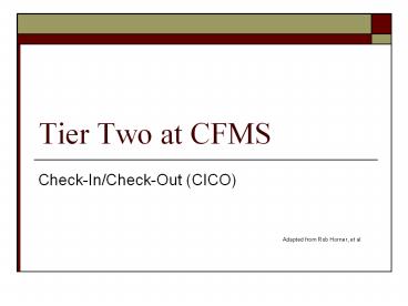 Title: Tier Two at CFMS