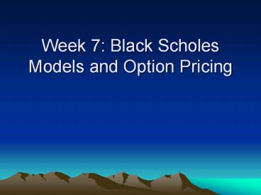 <Notice: Removed> Week 7: Black Scholes Models and Option Pricing PowerPoint PPT Presentation