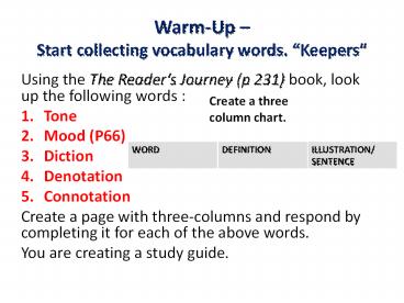 Warm-Up Start collecting vocabulary words.