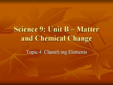 Science 9 Unit B Matter and Chemical Change