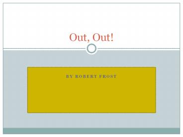 Out, Out! BY ROBERT FROST Opening Images of Sight, Sound and Smell The Parody and the Irony The reference to the boy looking to the hills echoes one of Frost s ... – PowerPoint PPT presentation