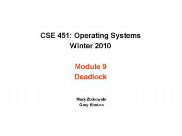 <Notice: Removed> CSE 451: Operating Systems Winter 2010 Module 9 Deadlock PowerPoint PPT Presentation