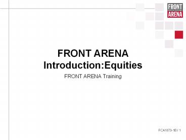 1FRONT ARENA IntroductionEquities