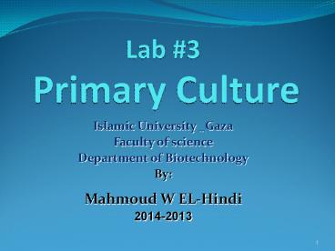 <Notice: Removed> Lab 3 Primary Culture PowerPoint PPT Presentation