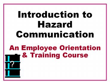Introduction to Hazard Communication An Employee Orientation PowerPoint PPT Presentation