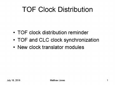 TOF Clock Distribution PowerPoint PPT Presentation