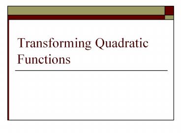 Transforming Quadratic Functions PowerPoint PPT Presentation