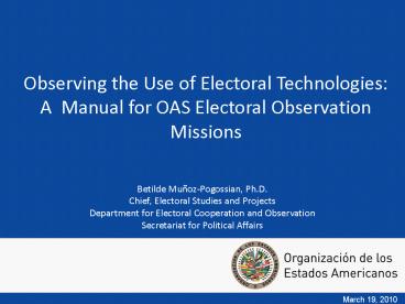 Betilde Muñoz-Pogossian, Ph.D. Chief, Electoral