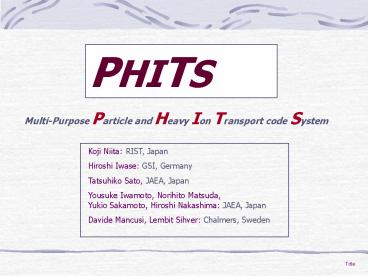 Title: PHITS (Particle and Heavy Ion Transport code System)