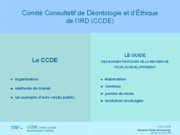 CCDE www.ccde.ird.fr - Un exemplaire envoyé avec les bulletins de