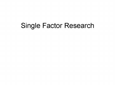Title: Single Factor Research