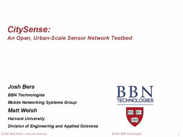 <Notice: Removed> CitySense: An Open, Urban-Scale Sensor Network Testbed PowerPoint PPT Presentation