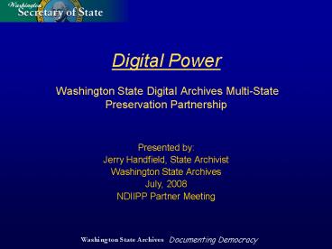 Title: Digital Power Washington State Digital Archives Multi-State Preservation Partnership