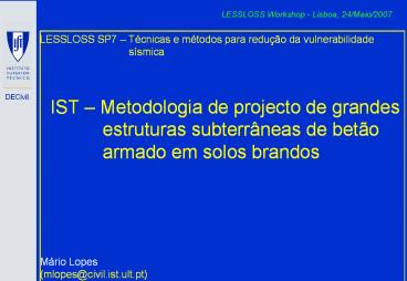 1LESSLOSS Workshop - Lisboa, 24/Maio/2007
