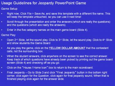 1- Usage Guidelines for Jeopardy PowerPoint Game
